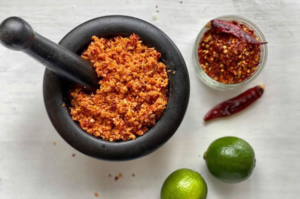 Sri Lankan rice and curry consists of steaming hot, fluffy rice (samba or kakulu varieties) that is served with a variety of side dishes commonly called curries. There are typically at least three (ideally five) different curries served along with the rice, one of which is usually based on fish or meat, and the other two are based on vegetables. Common accompaniments to rice and curry include sambol (a Sri Lankan relish), a gravy or hodda with spices and coconut milk, mallum (chopped leaves with coconut), and fried crispy foods such as papadams. This specialty is a typical home-cooked dish